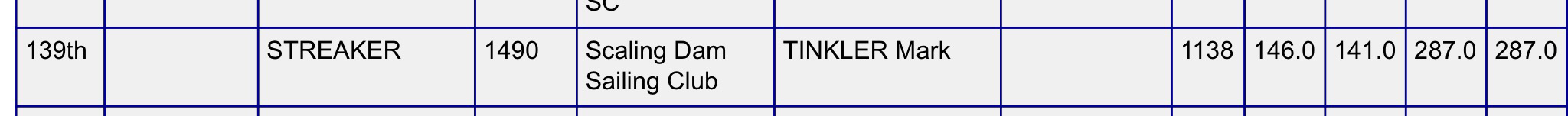 Awesome weekend, Friday night thunder and lightning and lots or rain, great camping weather. Saturday lots of wind and big waves, the ride back was quick, I never knew a streaker could throw up such a stern wave. Quarter of the fleet didn’t finish so I was chuffed just to survive. Sunday was a nice breeze at the to begin with, I got the best start of my life, but there was a general recall. Second start same strategy going well until some hot shot in a 49r (men’s Olympic class) and I tangled out rigging. Went well after that, after an hour and a half I was the lead Streaker when going left failed and I sailed into a hole. The wind wind was very up and down after that. It was great to be back at Ullswater especially with the great Scaling crowd, and we one the Dalesman trophy – largest visiting club. I can 139th out of 232 entries – well chuffed. The top 20 is full of multiple word champions.