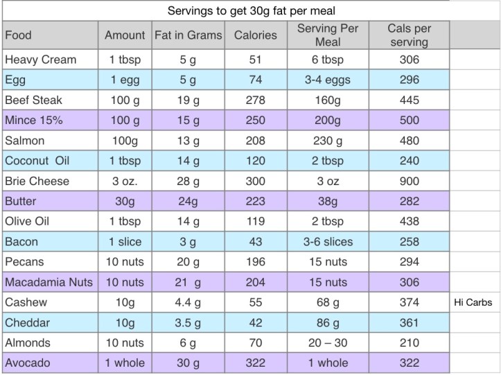 I bought a Keto cook book and it was ridiculously complex, with expensive ingredients, sent it back. Very much liking DrBerg.com site and videos. One article had simple table with fat and servings per portion of some basic ingredients. I have added a bit