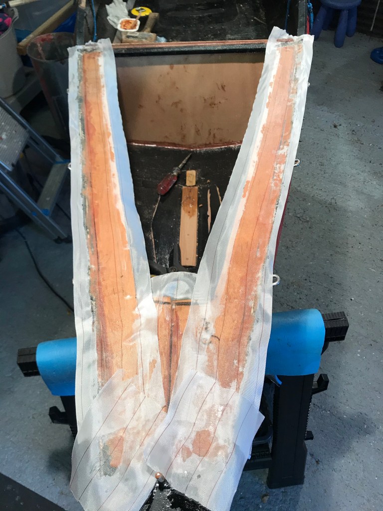 Tape added to the hatch coaming to add a bit more strength. Not sure it actually needs in, feels very stiff already as it has blocks about every 10 inches. Love using peel ply, great finish and always fun in the morning to peel it off.