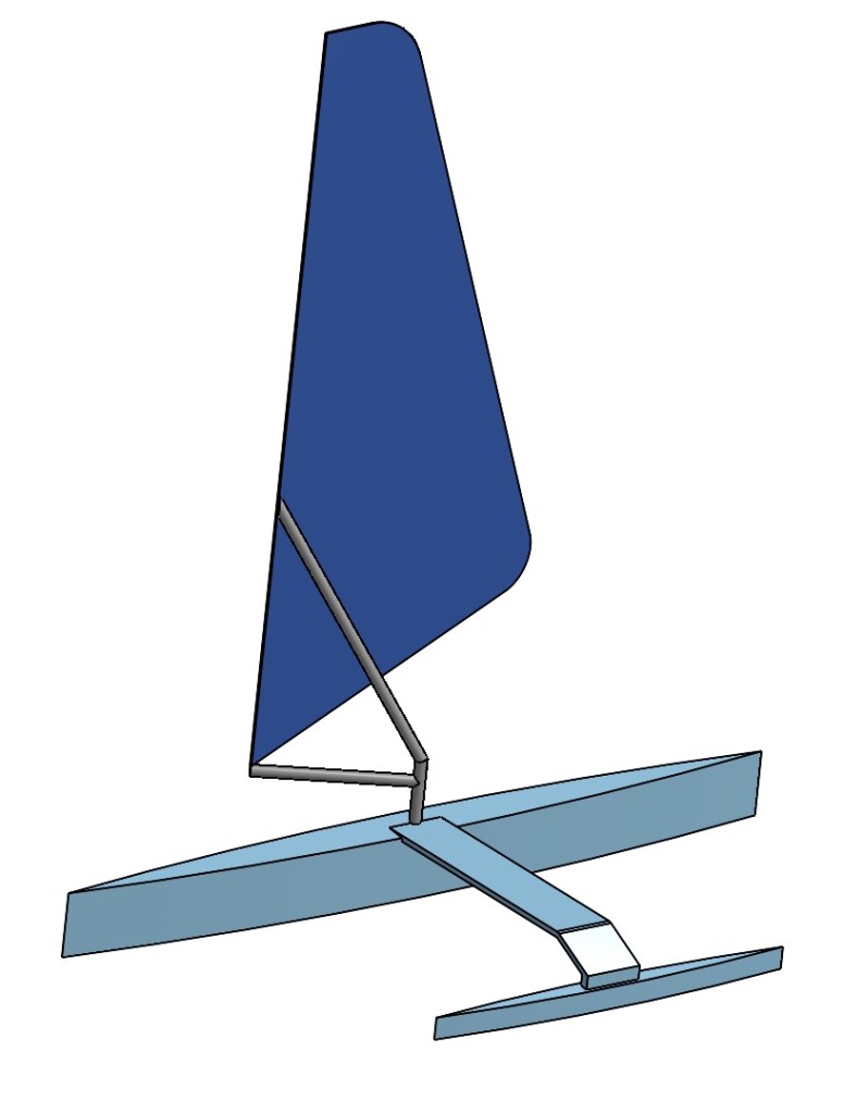 Like the idea of a Proa that can move the sail effectively fore and aft to steer. There would be a board, possibly adjustable in the centre