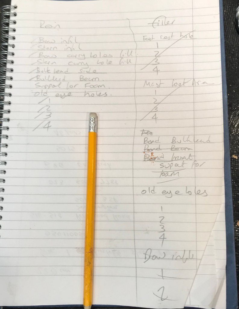 I’ve messed about with epoxy, boat building and repair for thirty years and finish and though, ‘oh I should have done that bit’ etc. So genius two lists, one for pure epoxy and one for filler.