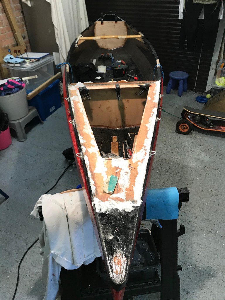 Now I never do it on my racing dinghy but I came across it on a canoe build blog. There are small areas of the hull of iki wa’a was filled with this and they have stood up to five years of use without issue. By the time I’ve sanded back the amount added will be grams and it much easier than epoxy.