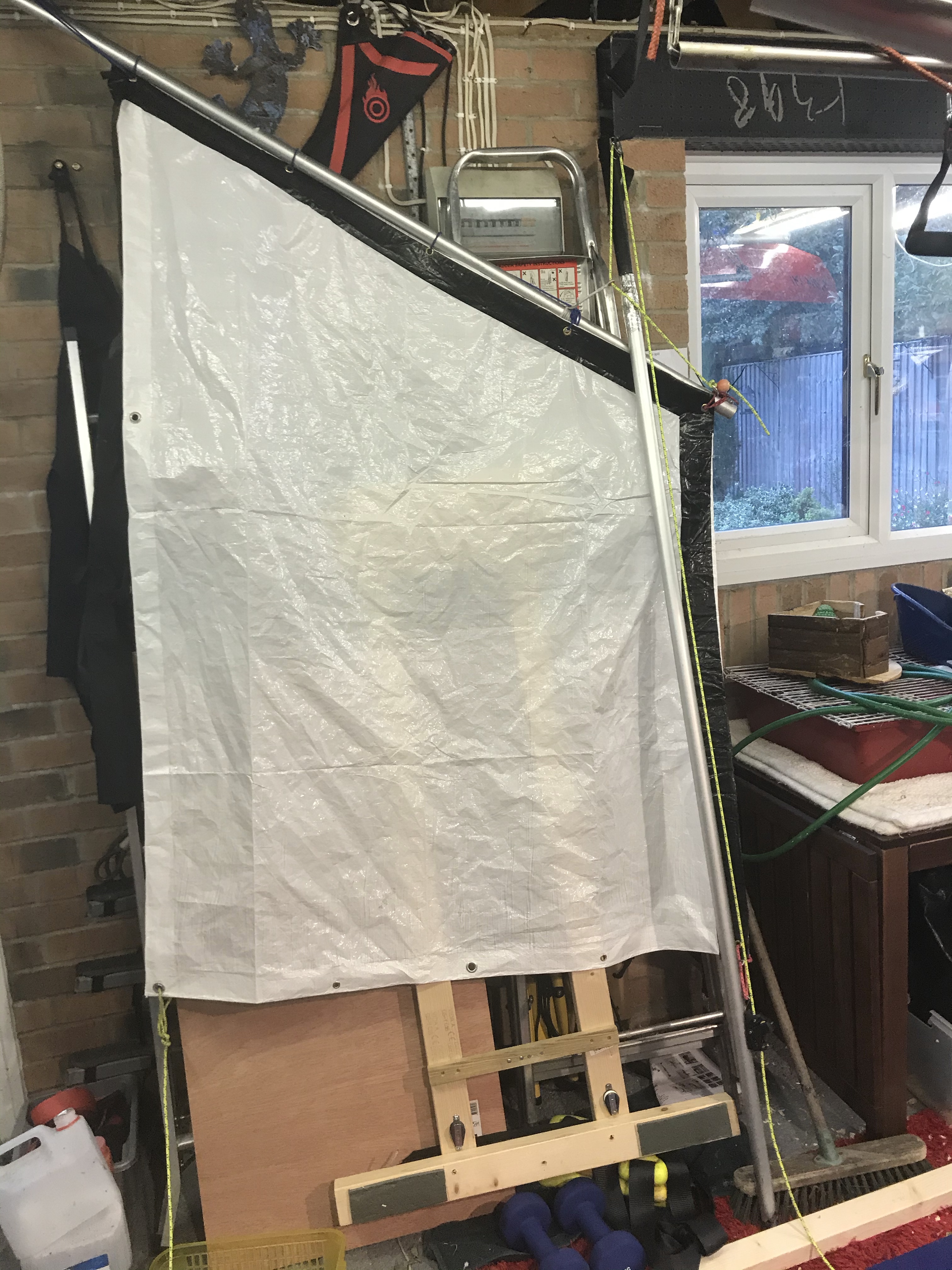 The halyard is cleated with a spinloc cam cleat, because it’s what I had, which is great as it is easy to cleat and more importantly released. The down haul is fixed as I get enough luff tension with the halyard.
