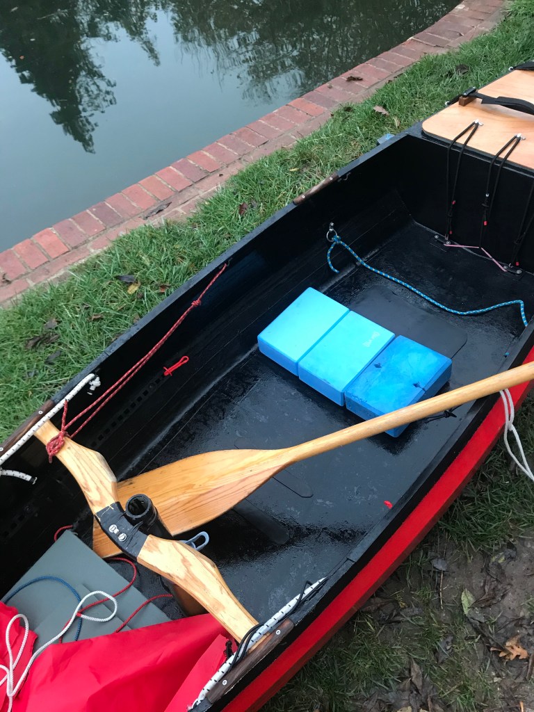 I took the seat out and loaded the canoe up with three yoga blocks and bits of camping mats. I have never learnt how to properly paddle with a single paddle and the paddle was a old cheap one that was an emergency paddle for dinghy sailing.