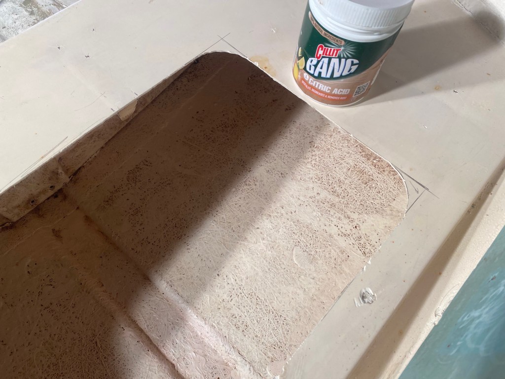 I put a lot of effort into removing all the remains of the buoyancy reinforcements and 50 years of Chichester Harbour mud, it was made much easier with a bit of citric acid