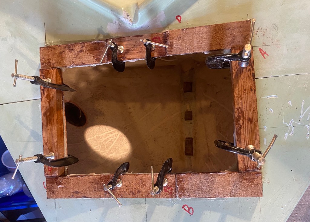 Obviously the foredeck has camber and fitting a flat hatch was going to be a challenge. Rather than spending an age on cutting very complex shapes I have fabricated out of 8 pieces. Hopefully they are all a little proud and can be fettled to one planar surface afterwards 🤞