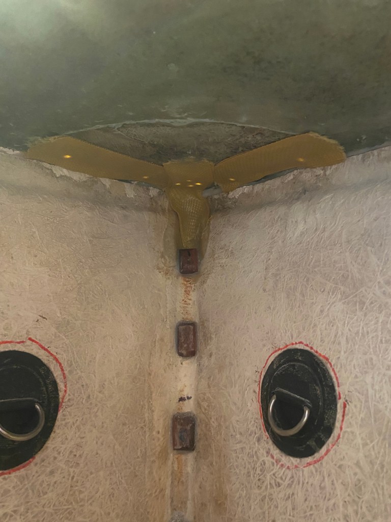 Also in the bow area I have added under deck reinforcements for the bow fitting and the fair leads. The hatch is a real bonus in allowing access to these critical parts and gives the ability to throw bolt with further reinforcements.