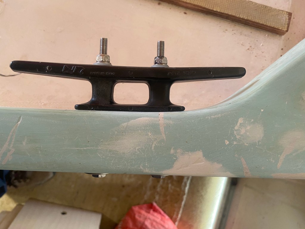 Finally the aft cleats which where through bolted, wood blocks had previously been glued in