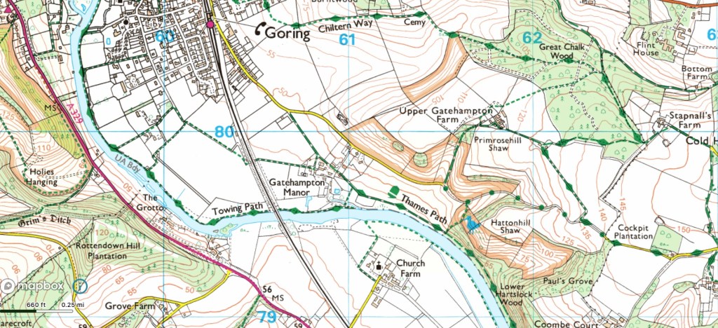 Determined to make Goring I paddled on the current getting stronger the further I went. There was just enough light to see the stunning bankside properties, one with a steel and glass dining room at the bottom of the garden. I pittied the ‘staff’ that had to get the food down from the house a good distance up a steep bank.