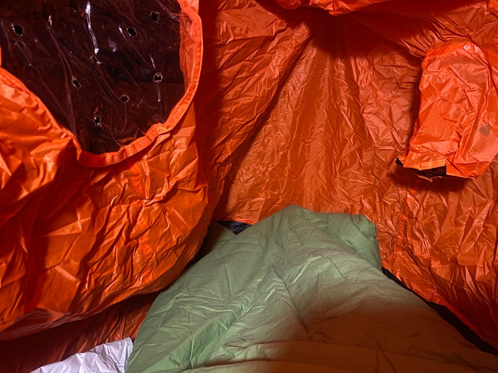 I got in my sleeping bag, the survival shelter offering little extra warmth, it as cold. I added layers of coats and still felt like I dosed rather than slept.