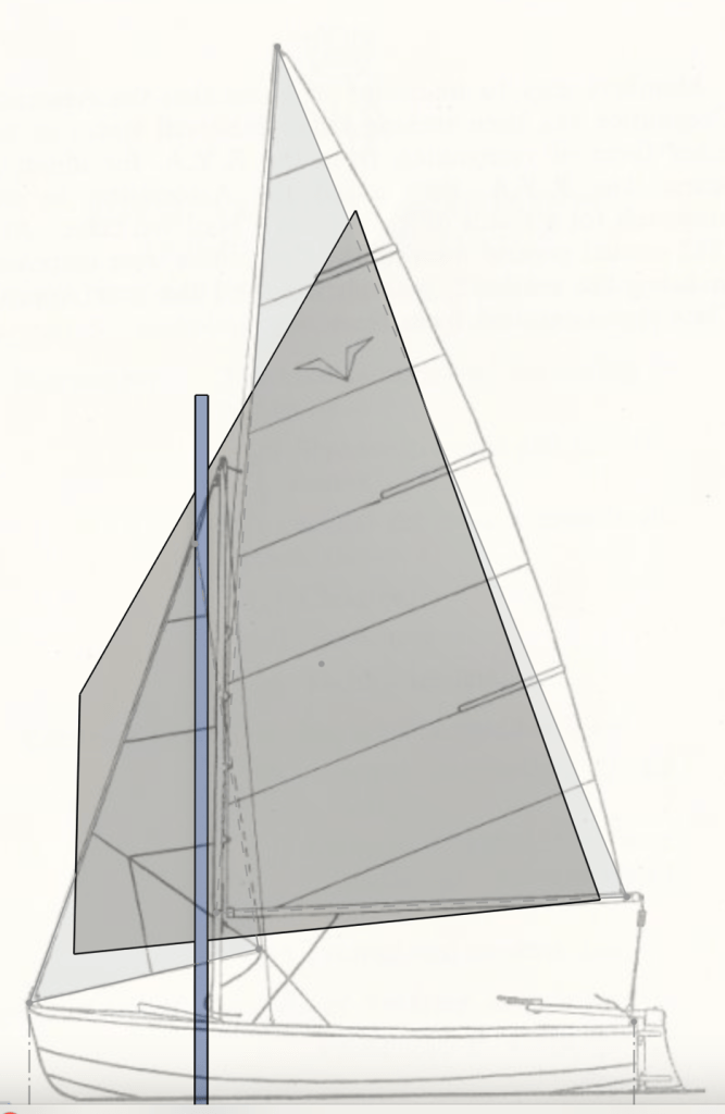 Interesting. I have just converted the hull of an old wooden Gull to take a junk (=standing lug?) rig, and done the calcs to have the C of E in about the same position as when the Gull is sailed main-only. I’ll make a test sail from a tarp, which appears to be a viable option even for a permanent sail.